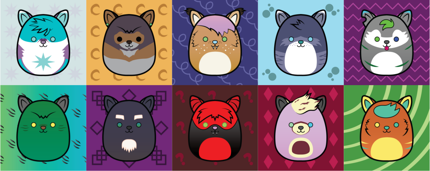 Digital artwork with a custom background featuring your character as the popular Squishmallow plushie!
